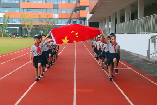 仪式开始,小国旗手们迈着整齐划一的步伐,走到国旗台前,伴随着国歌响起,国旗缓缓升起。注目、敬礼,全体师生庄严肃立,感受这神圣的一刻。
